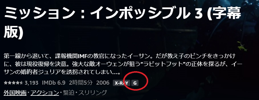 映倫公式サイトには、『ミッション:インポッシブル3』(2006年)の年齢区分情報の記載がありませんでした。